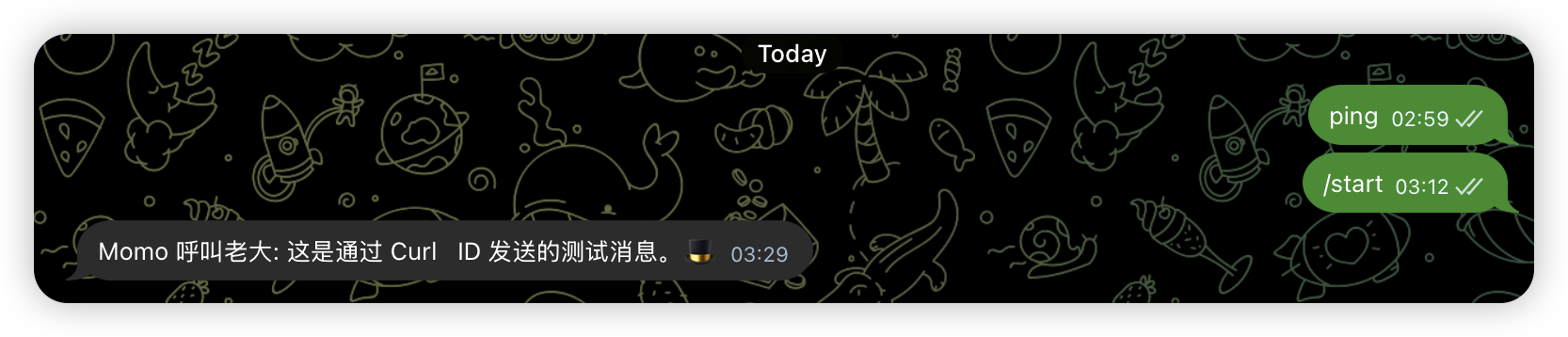 再次在 Telegram 机器人里发送 ping,如果收到 pong,恭喜,你的私人助理正式上线。
