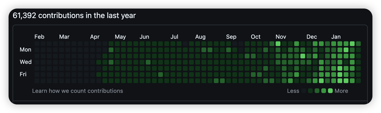 看下他的Github,你会发现,它每天的commit少则几百次,多则上千次,不得不佩服他的热情和执着:
