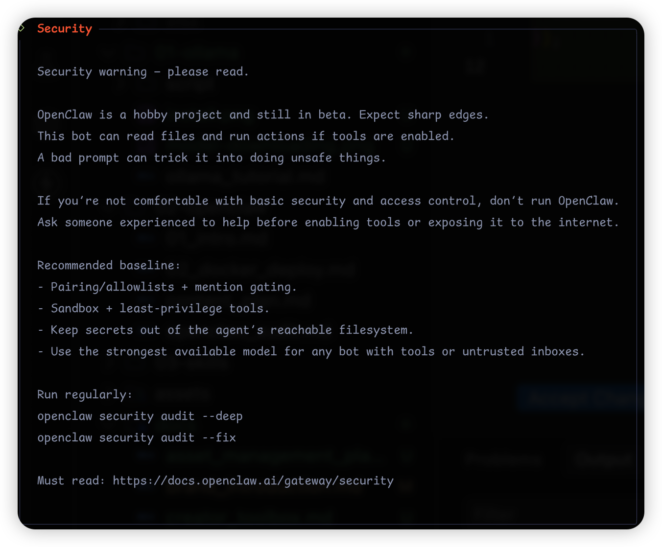 所以 OpenClaw 官方在安装前也给出了安全建议: