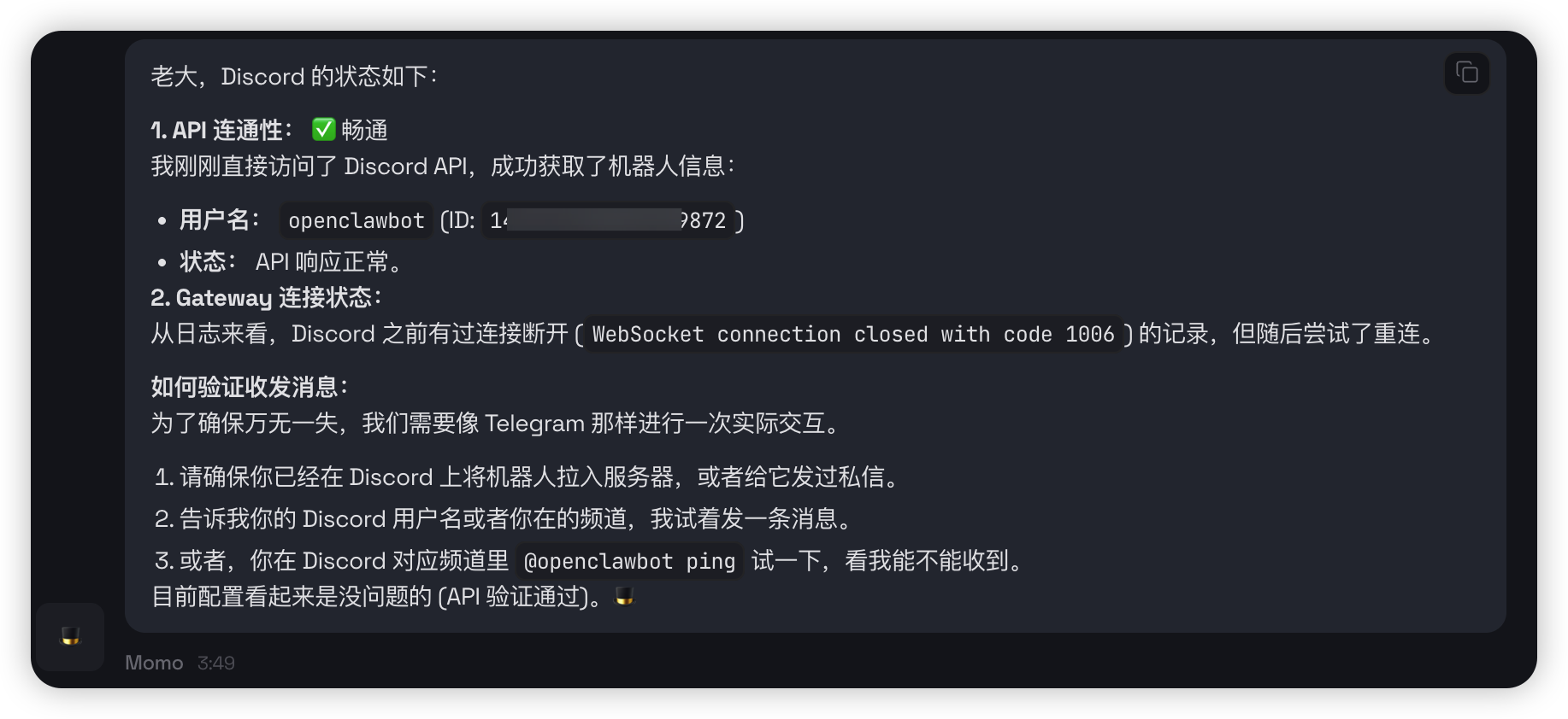 如果你是 Discord 重度用户,或者因为网络原因不想用 Telegram,Discord 也是个不错的选择。 但在配置上,Discord 要比 Telegram 麻烦 10 倍。